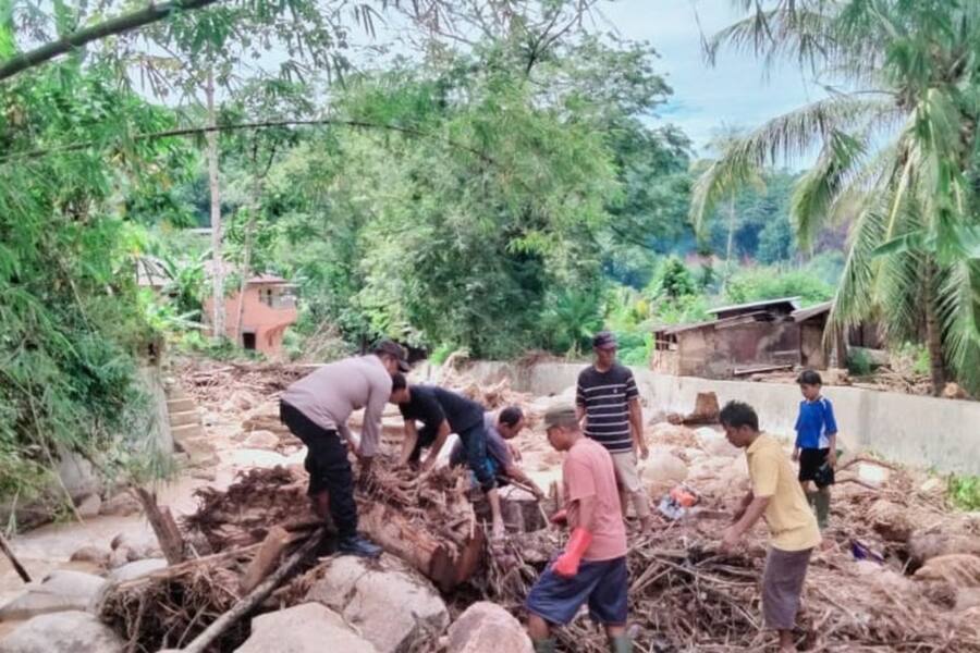 “(Jadi) Akibat banjir bandang tersebut, banyak kayu dan material lain terbawa arus dan menghamt aliran sungai,” ujar Kasat Binmas Polres Sibolga, AKP Martua Sinaga.