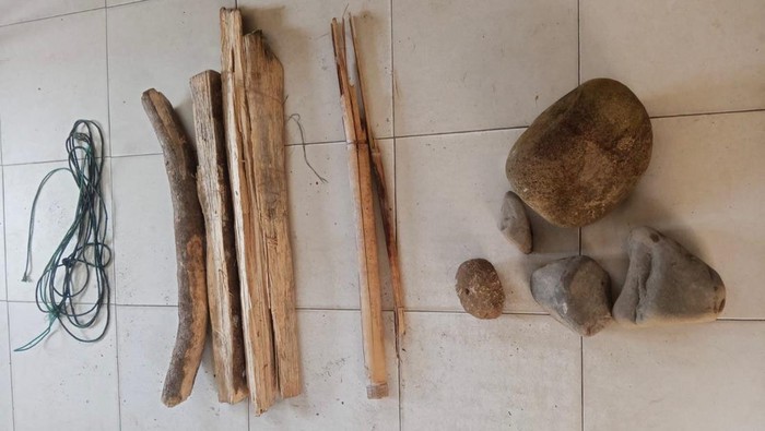 Dari lokasi, petugas mengamankan sejumlah barang bukti, seperti lima buah batu, dua potong bambu, seutas tali, dan beberapa pakaian korban. Berdasarkan hasil pemeriksaan sementara, peristiwa itu diduga dipicu karena isu santet. Namun, Mulia menyebut pihaknya masih mendalaminya.