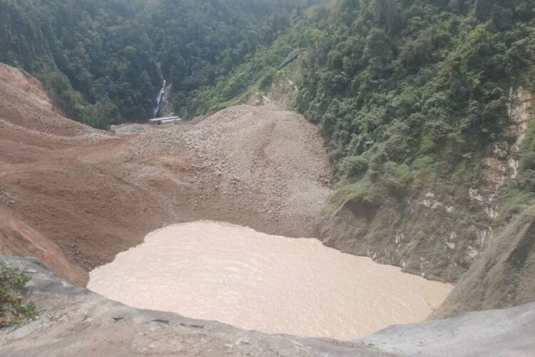 Material longsor menutup aliran sungai yang keluar dari arah bendungan PLTA sehingga menahan debit air dan membentuk kanal atau danau kecil dengan kedalaman sekitar kurang 50 meter.