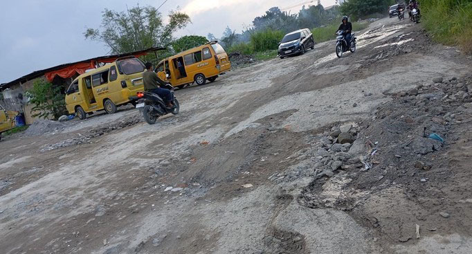 “Sebenarnya orang biasanya motong jalan dari sini, tapi kondisi jalannya kaya gini, tengok lah, lubang nya, parah kali udah, ” ungkapnya.