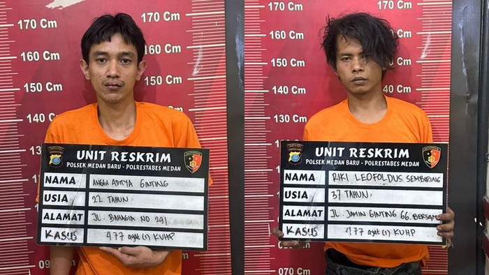 Kanit Reskrim Polsek Medan Baru Iptu Poltak Tambunan merinci identitas kedua pelaku. Keduanya yakni Riki Leofoldus Sembiring (37) dan Anggi Aditya Ginting (22).