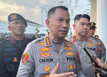 Aksi ini terlihat dijaga aparat kepolisian. Massa maupun polisi yang berjaga terlihat menggunakan masker.***dtc/mpc/bs